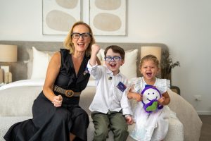 Image: Good Friday Appeal executive director Rebecca Cowan with Faces of the Appeal, Alissa and Oliver.