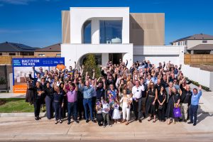 More than a hundred big-hearted tradies and suppliers behind a knockout home built to help sick kids ploughed into a huge thank-you brunch at Tarneit on Tuesday morning.